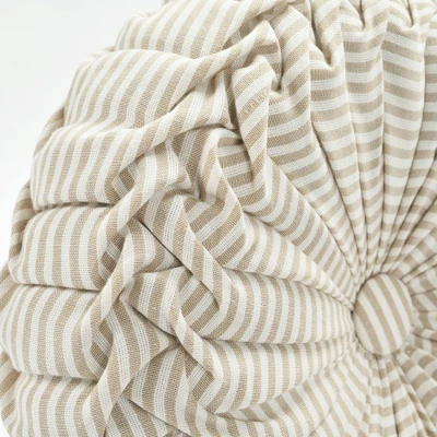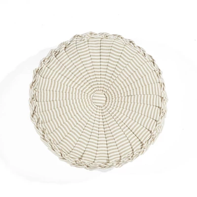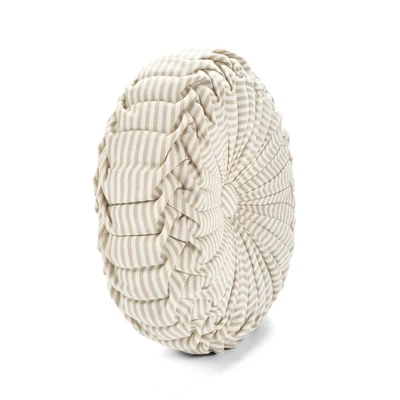 14″ Farmhouse Ticking Striped Yarn Dyed Pleated Round Throw Pillow – Lush Décor