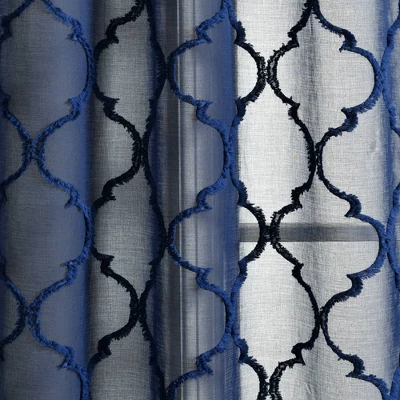 These Avon Trellis Grommet Sheer Window Curtain Panels are beautiful and elegant in their own unique way. The subtle trellis texture adds a graceful style and makes these curtains perfect for any room in your home. The sheer fabric allows plenty of light to brighten up your home and still provides some privacy from the outside. These panels have grommets for easy assembly. Each panel measures 38 inches in width and 95 inches in length and they are sold by the pair. These window curtain panels are hand wash and hang dry. Please refer to the care label for full instructions before cleaning.