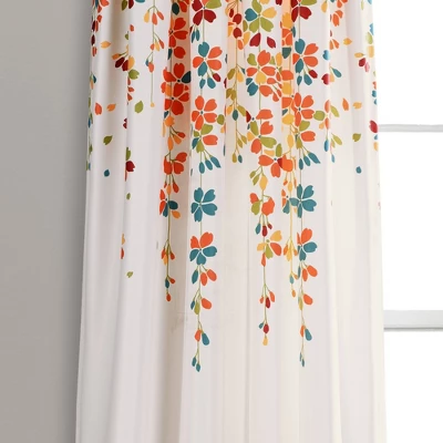 - Elegant Florals: The Weeping Flower Room Darkening Window Curtain Panel Set features a calming, decorative design with turquoise and tangerine flowers cascading down on a vine. It’s a charming modern piece that also delivers room darkening efficiency.