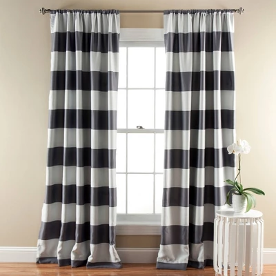This set of Striped, Room Darkening Curtain Panels drape beautifully and filter light effectively in a perfect combination of pretty and practical. These stylish curtains have a bold striped pattern that’s sure to make the perfect finishing touch to your existing décor. Blackout curtains are a practical solution for late sleepers and have a rod pocket for quick and easy installation. Whether you want to darken a room, block drafty windows, ensure privacy or simply add a touch of decoration to your home, you’re sure to love these fabulous window treatments. Includes 2 window panels. Dimensions: 52″ W X 84″ L. Machine-washable.