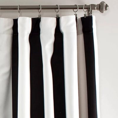 Enhance your home decor with this Wilbur Stripe Window Curtain Set. The modern vertical stripe pattern is perfect for nearly any design style and practically any room in the house. This Wilbur Stripe Window Curtain Set is great for all ages. The classic black and white stripes would work well in a nursery, teenager’s room, a first apartment, a master bedroom, living room, dining room, or guest bedroom. The yellow and white striped version is also very versatile. Our Wilbur Stripe Window Curtain Set is sold by the pair. Each panel measures 52 inches wide and is available in your choice of 84 inches, 95 inches or 108 inches in length. Their room darkening capabilities help filter some of the light and heat out of your room while still allowing some natural light in. These panels have a unique 3″ back tab rod pocket which runs on the reverse side of the panel, hiding it from view and gives you three options for hanging these curtains. You could hang with the tabs over the rod, slide the curtain rod through the rod pocket, or hang the panels with clips as we have pictured. This curtain panel set is safe to machine wash and tumble dry. Please follow all instructions on the label. Part of the Wilbur Collection.