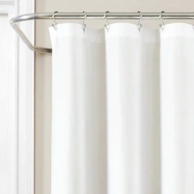 This curtain measures 72 inches across and hangs 70 inches down with an added 2.5 inches of tassel fringe at the bottom. The Boho Viviane Geo Fringe Shower Curtain will fit almost any bathtub and installs easily with standard shower curtain rings or hooks. Its opacity adds full privacy to the person taking a bath or shower.