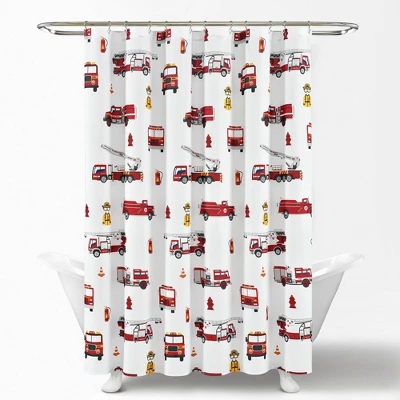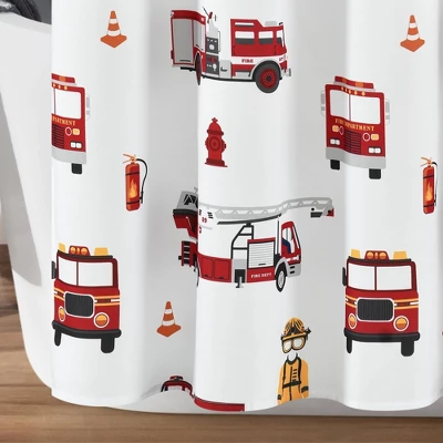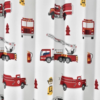 Give your child’s bathroom a firefighter theme with this Make-A-Wish Fire Truck Shower Curtain. Your little hero in the making will love the details of fire trucks from many time periods, safety gear, and more. Sales of this shower curtain support the Make-A-Wish Foundation*. If your child has big dreams of becoming a firefighter or other first responder, this pattern will really encourage him or her to let their imagination run wild during bath time. The pattern on this Make-A-Wish Fire Truck Shower Curtain includes bright red fire trucks that pop off the solid color background, safety gear, cones, hydrants, and extinguishers. This Make-A-Wish Fire Truck Shower Curtain is ideal for those who want to create a bold look for their children’s bathroom and really encourage their dreams of one day becoming a real hero. Measuring 72 inches on each side, this Make-A-Wish Fire Truck Shower Curtain will fit nearly any bathtub. It’s bold and colorful print will create a fun and exciting atmosphere for your kid’s bathroom. Care for this Make-A-Wish Fire Truck Shower Curtain is very easy. It is safe to machine wash and tumbles dry. You may also use an iron on light heat to release wrinkles and eliminate fold lines. Part of the Make-A-Wish Fire Truck Collection.