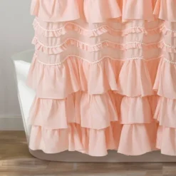 Lush Décor Jacquard Wave Shower Curtain Soft White: Polyester, Buttonhole Top, Machine Washable