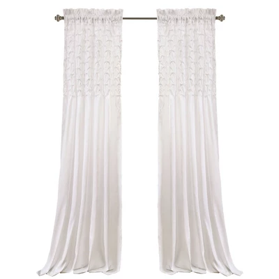 These long and flowing window panels are exquisitely made with diamond pin tucking and elastic embroidery across the top, giving these curtains a beaded look. The embellishments add interest without going overboard, making them perfect for the minimalist. This 2pc. set includes 2 window panels. 100% polyester content fabric. 3″ Rod Pocket slides onto curtain rod for quick and easy installation. Oeko-Tex Certified.