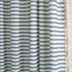 Lush Decor Boho Coastal Horizontal Ticking Stripe Tassel Window Curtain Panels Blue 52X84 Set