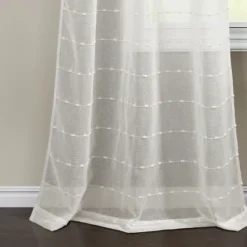 Lush Décor Farmhouse Textured Back Tab/Rod Pocket Sheer Window Curtain Panels White 38×84 Set