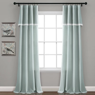 The stylish vintage look of this Linen Lace Window Curtain Panel Set adds texture and elegance to any room in your home. The lace border pops against the linen fabric. The slight weave variations are authentic to this natural fiber blend and create a relaxed look. Our Linen Lace Window Curtain Panel Set will instantly enhance the look of your room with its gorgeous ruffle top details. This set can be used in a formal dining room setting or a boho bedroom, and anything in between. The Linen Lace Window Curtain Panel Set is sold by the pair, so you will get two panels in each pack. The curtain measures 84 inches long and 38 inches wide. The Linen Lace Window Curtain Panel Set is made with a three-inch rod pocket, which gives you two options for hanging these in your home. You can slip the curtain rod through the rod pocket, or you can hang the panels from the rod with clip rings as shown in the photos. When it comes time to care for the Linen Lace Window Curtain Panel Set, we do recommend dry cleaning or hand washing. Part of the Linen Lace Collection. Oeko-Tex certified.