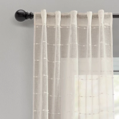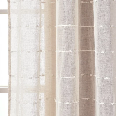 - Add a little farmhouse charm to your space with the subtle design and texture of this sheer window curtain set. Sheer window curtains are great for layering panels to create a dimensional look.