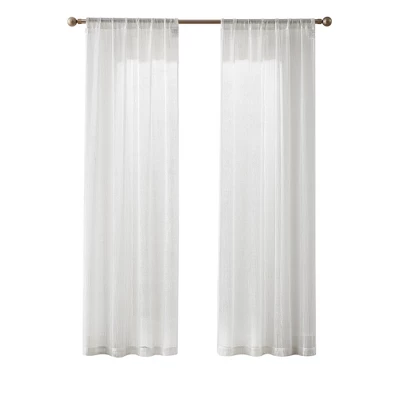 Lush Décor Milla Knitted Textured Sheer Window Curtain Panels Pearl White Pair 38×84