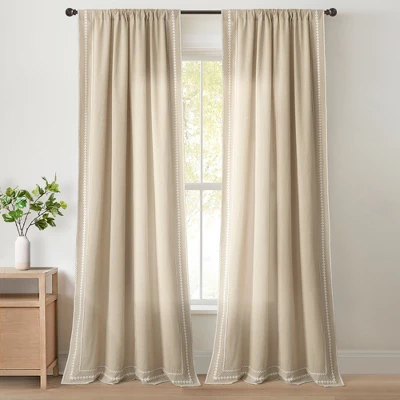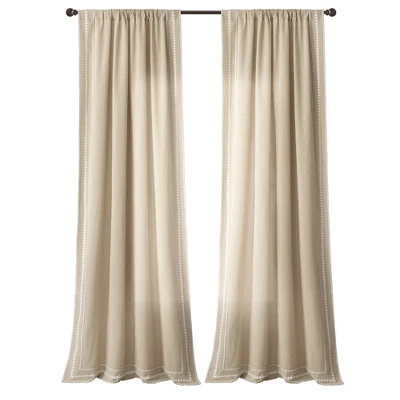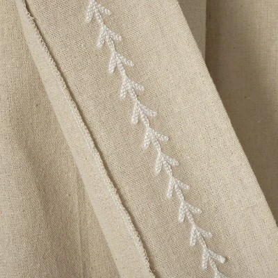 Delicately adorned with intricate ric rac embroidery, this panel adds a touch of charm and elegance to any space. Let natural light filter through while enjoying a unique blend of classic and contemporary style in this curtain panel. Keep your style simple and textured with this embroidered curtain panel. With an elegant touch from the detailed border, this window curtain can be styled in any space to accent your welcoming look. Sold as a single panel, this curtain has a 42 inch width. Please refer to label for full care instructions.