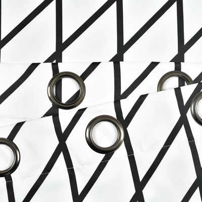 This Feather Arrow Geo Room Darkening Window Curtain Panel Set features a classy, yet trendy geometric pattern printed on light blocking fabric. While not full blackout, this Feather Arrow Geo Room Darkening Window Curtain Panel Set will effectively filter much of the light, heat and sound coming in from outside and offer complete privacy from outsiders. The Feather Arrow Geo Room Darkening Window Curtain Panel Set would look great in nearly any design style. They’re perfect for a master bedroom, guest bedroom or living room. Our Feather Arrow Geo Room Darkening Window Curtain Panel Set is sold by the pair. Each panel is 52 inches wide, so one set will cover a total of 104 inches in width. The length options for this style are 84 inches and 95 inches. Hanging these curtains is easy as can be with metal grommets that slide easily onto most standard curtain rods on the market. Caring for these curtains is very simple as they are safe to machine wash and hang to dry. Light iron or handheld steamer will take out any wrinkles or folds from packaging.