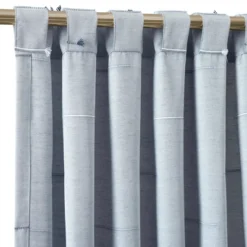Lush Decor Boho Coastal Horizontal Ticking Stripe Tassel Window Curtain Panels Blue 52X84 Set